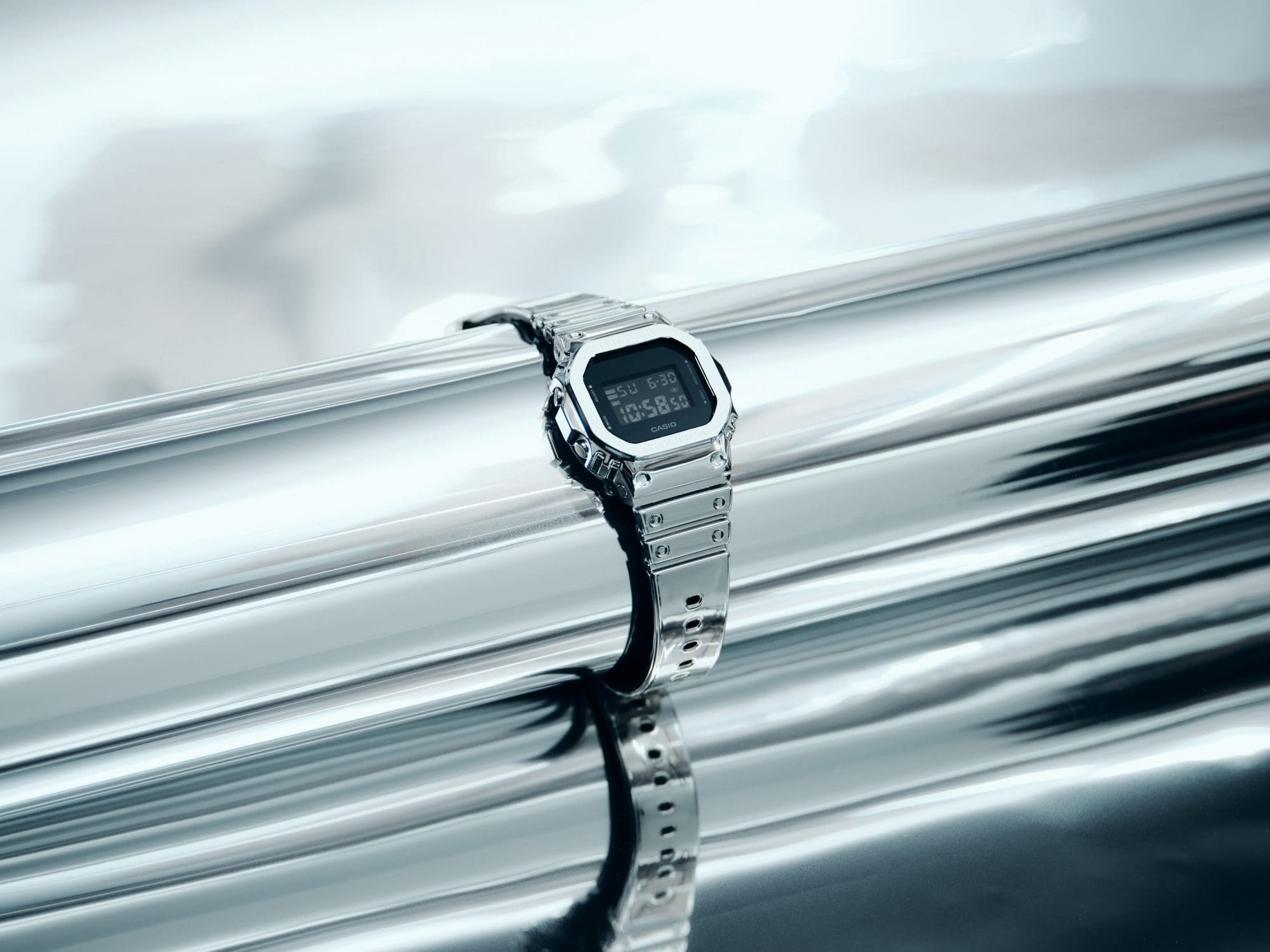 The Fine Metallic GM-5600 and GM-2100 models feature a reflective multi-layer silicone band.