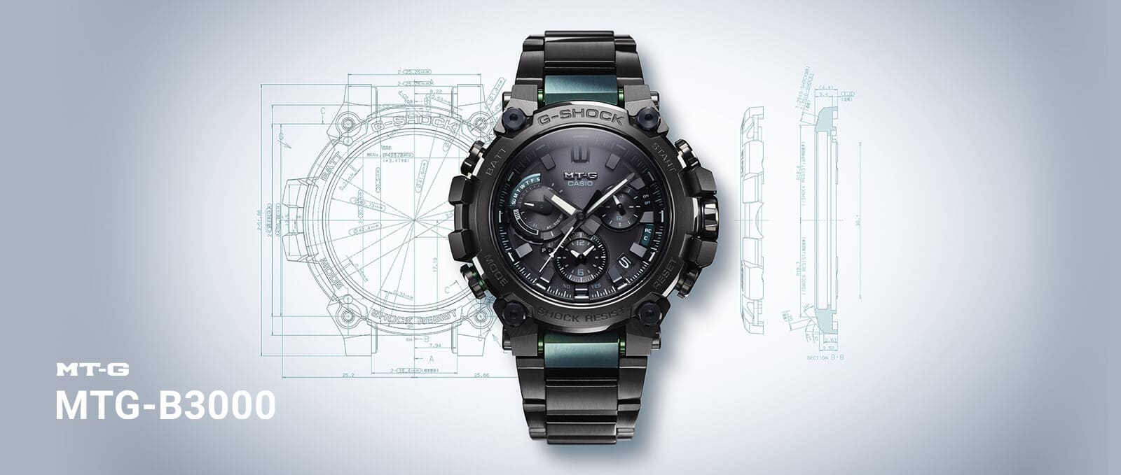 Ion plating (IP) in options of red or green provides vibrant accents to the bold black base colour. The MTG-B3000B features a monochrome black and grey appearance.