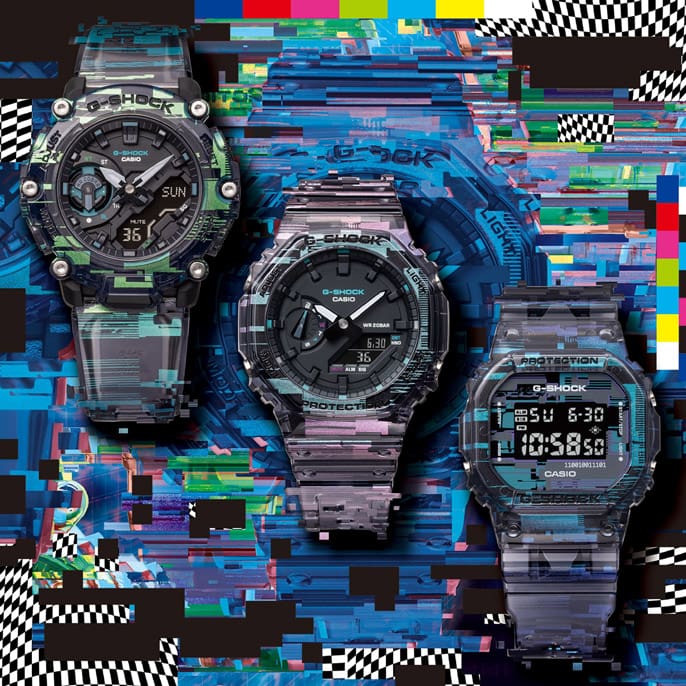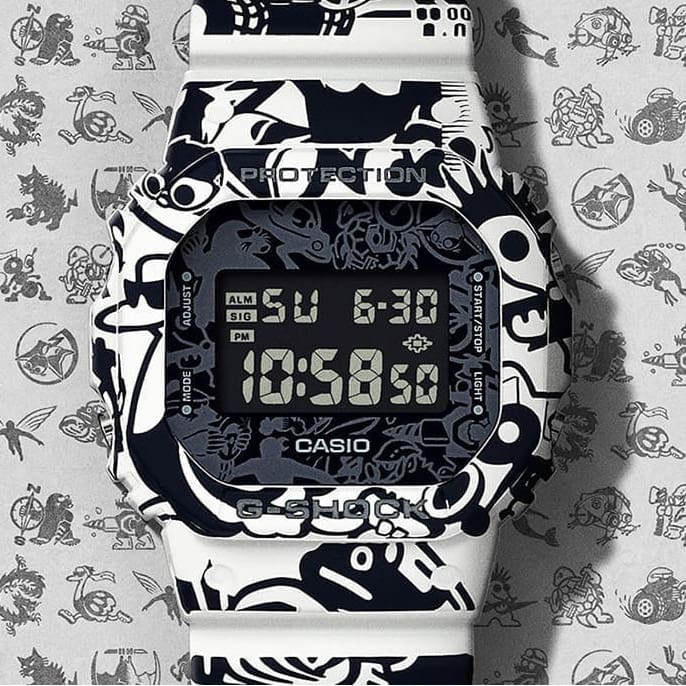 G-SHOCK has revived 18 characters that once adorned its watches, using their monochrome silhouettes to form a unique camouflage pattern.