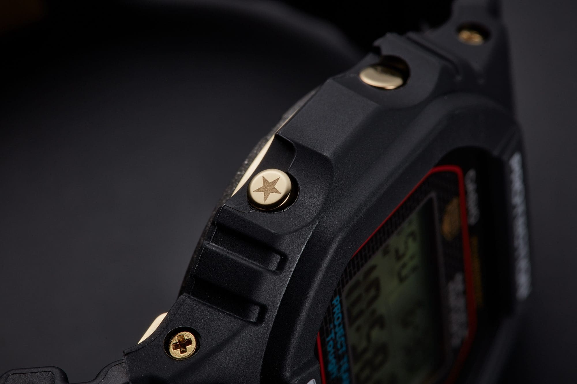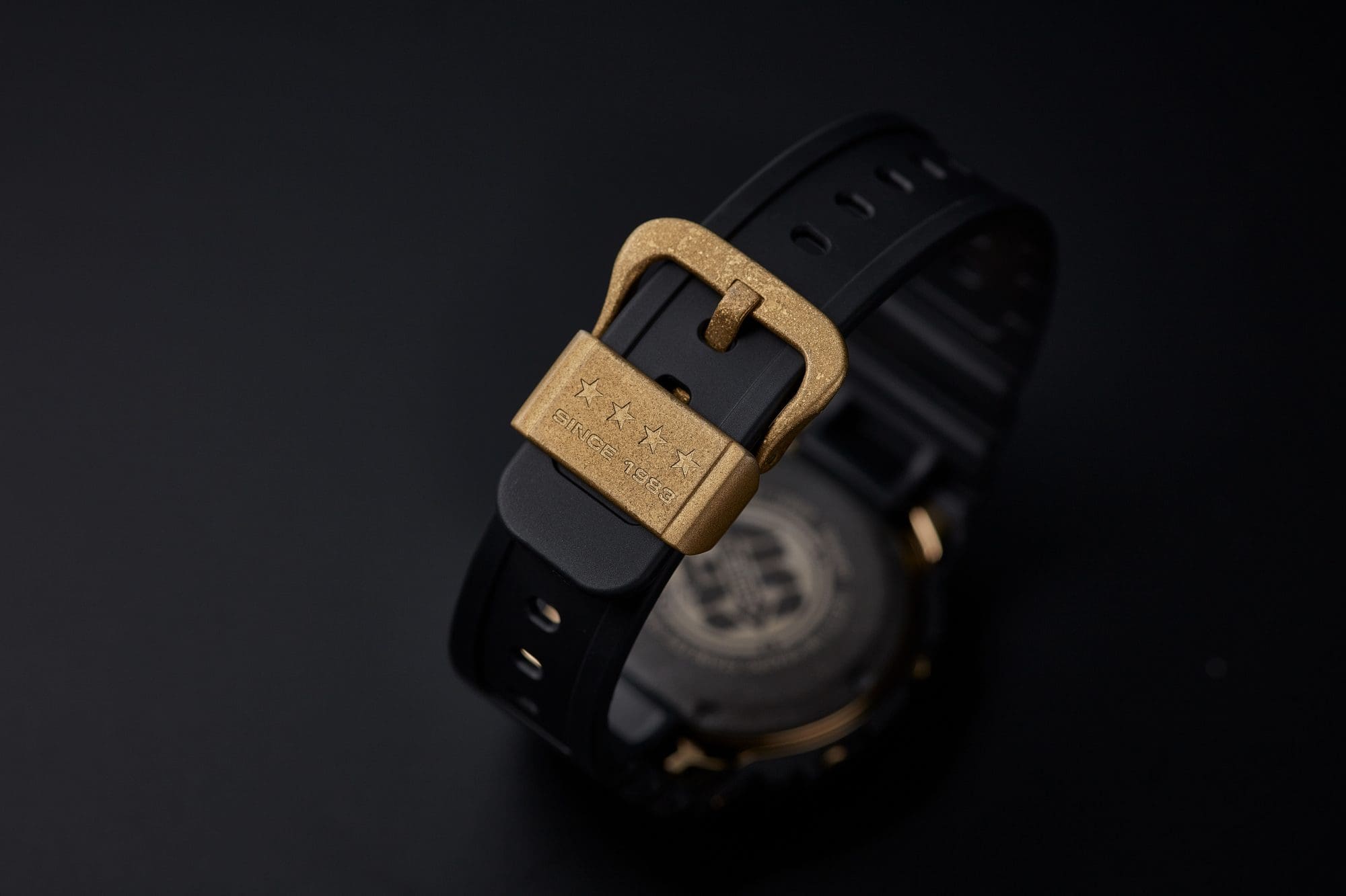In addition to this new material treatment technology, the bezel and strap of the DW-5040PG are made of bio-based resin, which CASIO is currently promoting. The DW-5040PG also shows the “evolution” of CASIO's eco-conscious stance. In addition, the anniversary logo on the screw back, the four stars on the ring expressing the 40th anniversary, and the star engraved on the push button at the 40 minute position on the lower left side of the case, are all subtly interspersed throughout the design to express the anniversary. The design of the watch is scattered with G-SHOCK's playful spirit.