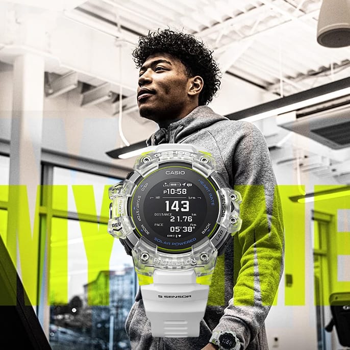 The Heart Rate Monitor GBD-H1000 gets refreshed with new colours to prep you for summer. It comes in two different colours. The iconic red and black G-SHOCK logo paired with colour accents, encased in a semi-transparent resin to represents the power of the sun.