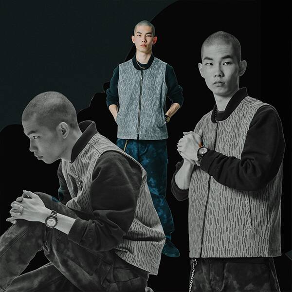 A circular hairline finish is applied to the dial, then a vapour deposition treatment is added for a glittering finish the color of gold. The same color appears on components including the index marks. The bezel and band feature glossy black, which pulls the overall appearance together for a versatile design suited to a wide range of settings.