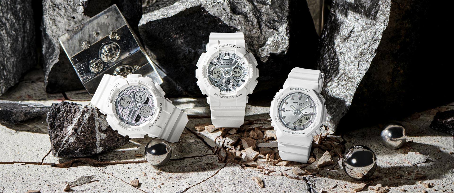 The white basic coloring of three of these models is offset by dials and hour markers that are given a silver vapor deposition or silver metallic finish, which creates a beautifully glittering look. The silver metal finish also goes well with silver fashion accessories.