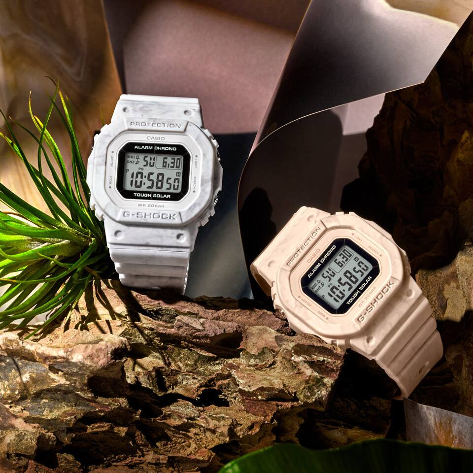 Introducing a G-LIDE inspired by a surf trip and oneness with nature, with natural colours and a design recalling a clean beach. Materials incorporate bio-based resin for an eco-conscious touch. The GLX-S5600 is a slightly smaller take on the G-LIDE base model, with all its handy surfer-oriented functions.