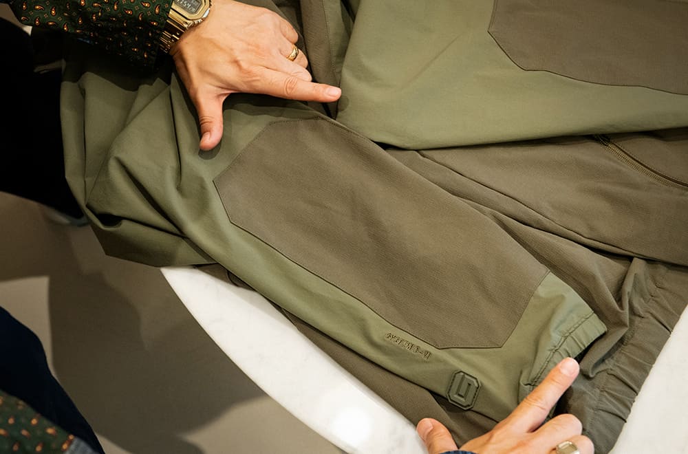 Suzuki: Military style usually evokes images of classic items like MA-1 flight jackets or cargo pants. However, this time, we've taken a sportier approach, incorporating technical materials and design.