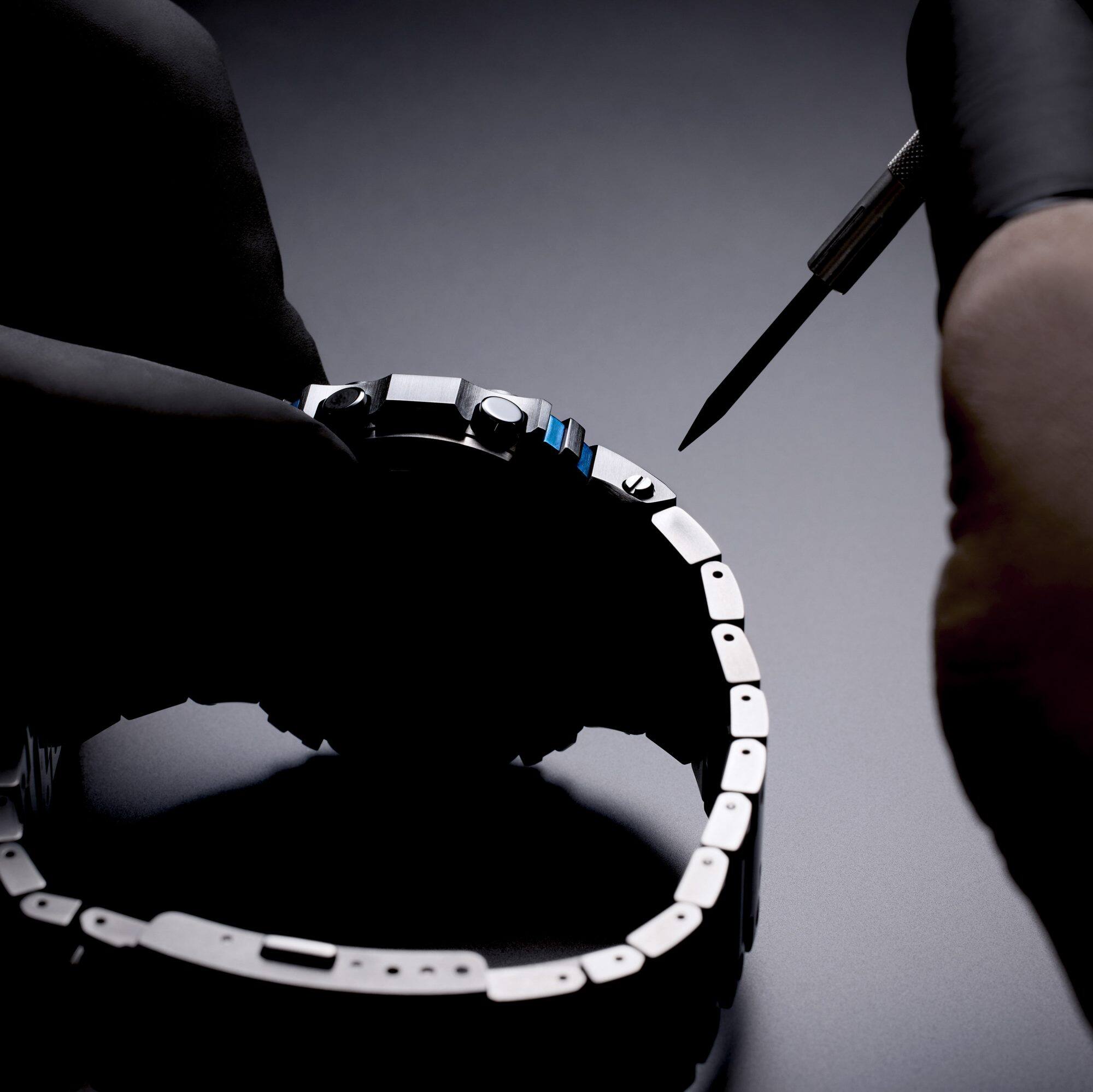 At the completion of the lengthy watchmaking process, all MR-G timepiecesare subjected to two different water-resistance tests, one using air pressure and the other using water pressure. Yamagata Casio experts conduct this testing with supreme confidence, backed by their record of meticulous control at every step of the process and their continuous history of commitment to quality.