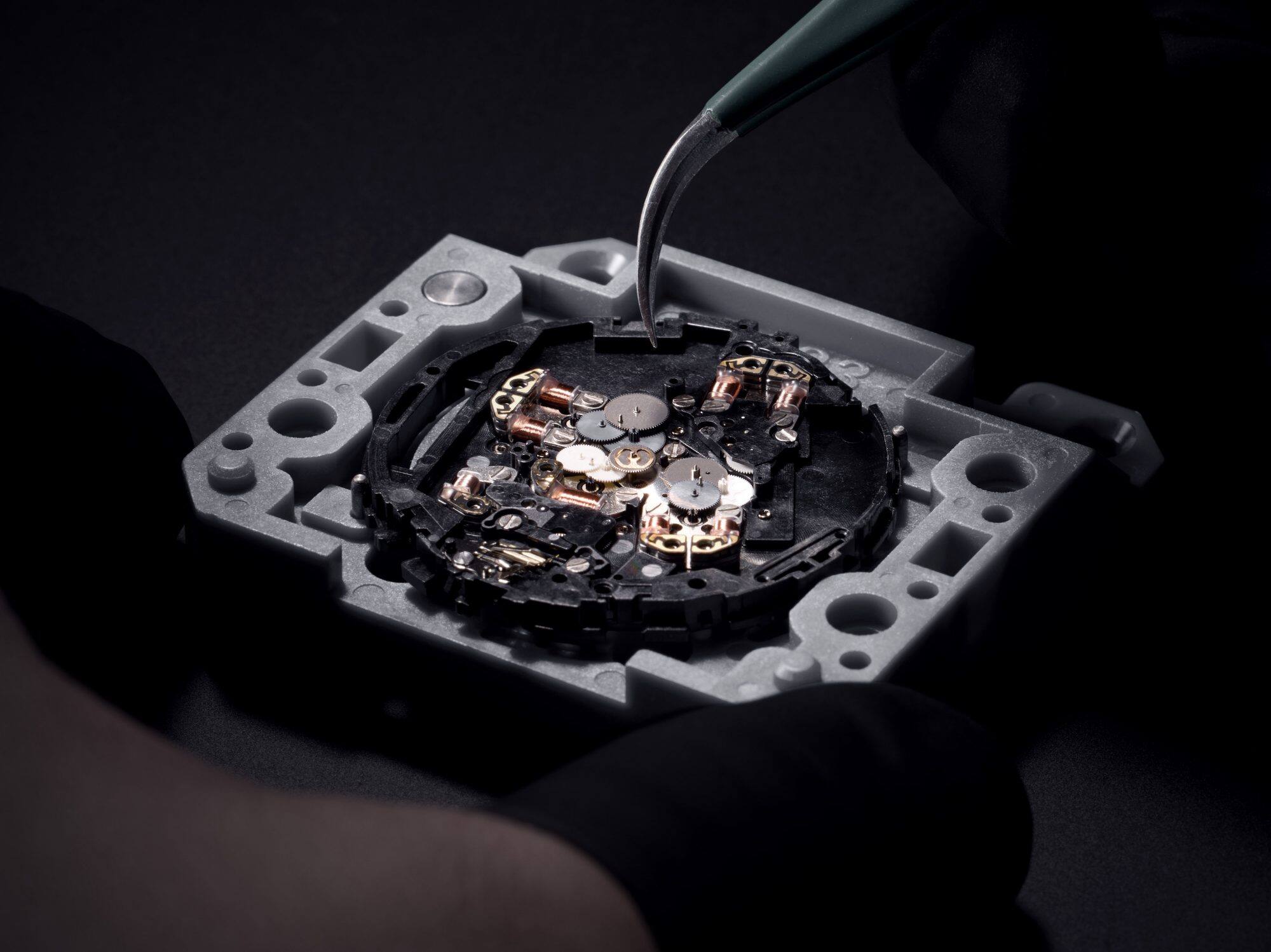 Yamagata Casio has been manufacturing die molds since 1985. After striving to make further improvements to its mold processing technologies, which directly affect the level of components’ precision, in 2000, the facility succeeded in developing ultra-precision mold processing technologies. Since then, Yamagata Casio has been using molds manufactured with ultra-precision on the nano scale (1/1,000 μm). This technology is fully utilized for the flagship MR-G line, from the dial and its indices, which might be likened to the face of the watch, to the rotor at the “heart” of the movement, all the way to the stunning, distortion-free mirror finishes, intricate surface processing, and component shapes of the most finely detailed complexity.