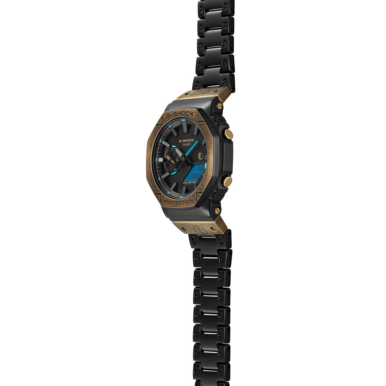 เราได้นำนาฬิกาอะนาล็อกโลหะล้วนรุ่น GM-B2100 มาเสริมด้วยการตกแต่งแบบเทคโนโลยี Hextech อันน่ามหัศจรรย์ที่เป็นเทคโนโลยีสุดสำคัญของโลก Runeterra ภายใน League of Legends กรอบและส่วนประกอบของสายได้รับการตกแต่งด้วยการชุบเคลือบไอออนสีทองและตามด้วยสีดำ แล้วขัดออกบางส่วนเพื่อสร้างรูปลักษณ์ที่ดูเก่าแก่แต่สวยงาม การตกแต่งด้วยสีฟ้าบน LCD และส่วนอื่นๆ เป็นการนำ Hextech ซึ่งรวมเวทย์มนต์ วิทยาศาสตร์ และเทคโนโลยีเข้าด้วยกันมาสู่โลกของ G-SHOCK