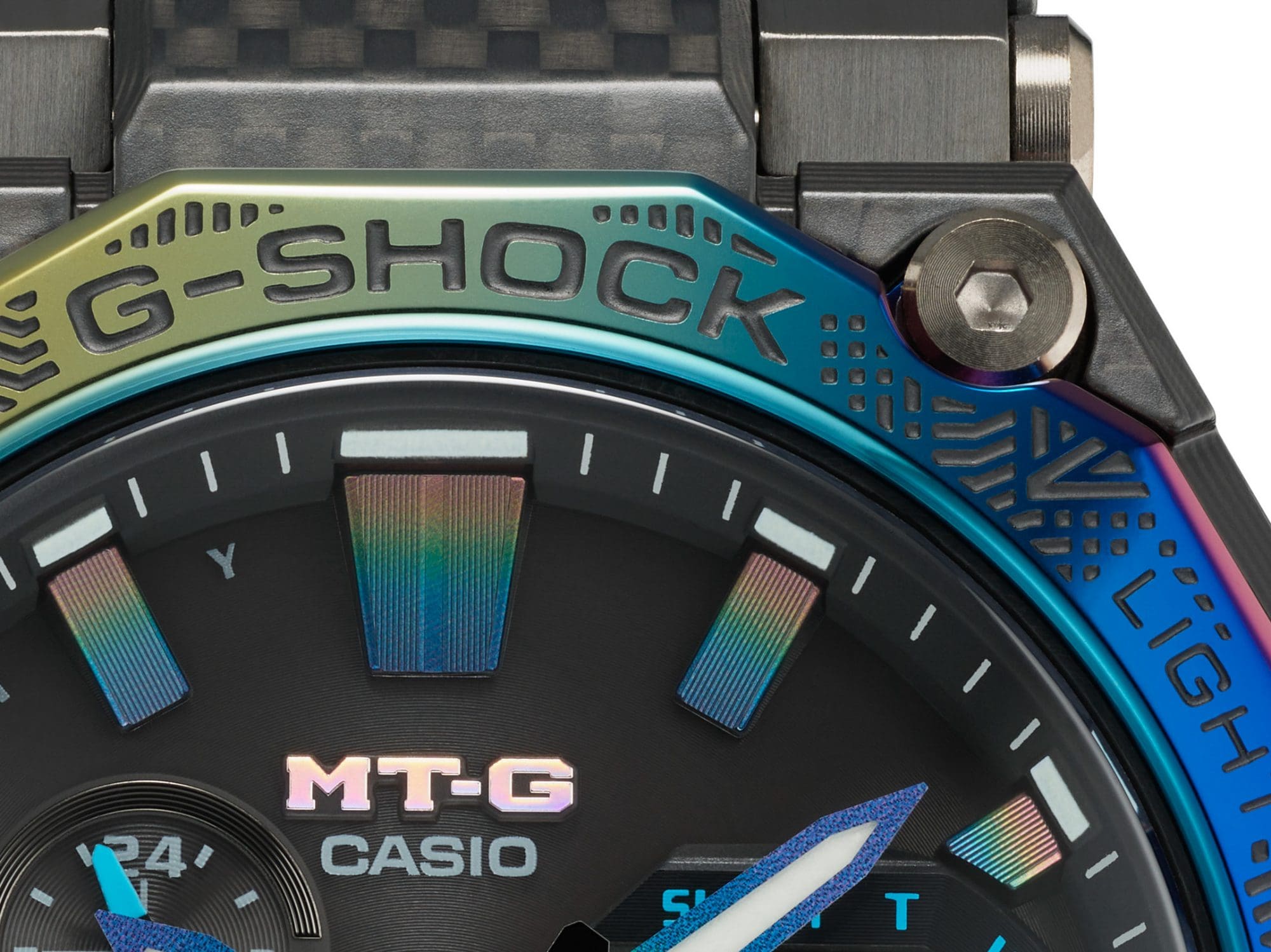 เราได้รวมโครงสร้าง metal core guard ของ MT-G ดั้งเดิมเข้ากับ carbon core guard ของ G-SHOCK รุ่นล่าสุด ตัวเรือนแบบ monocoque ทำจากเรซินเสริมคาร์บอนไฟเบอร์ถูกวางไว้ภายใน และเชื่อมต่อกับกรอบโลหะ ทำให้มีความแข็งแกร่ง สุญญากาศ และน้ำหนักเบา
