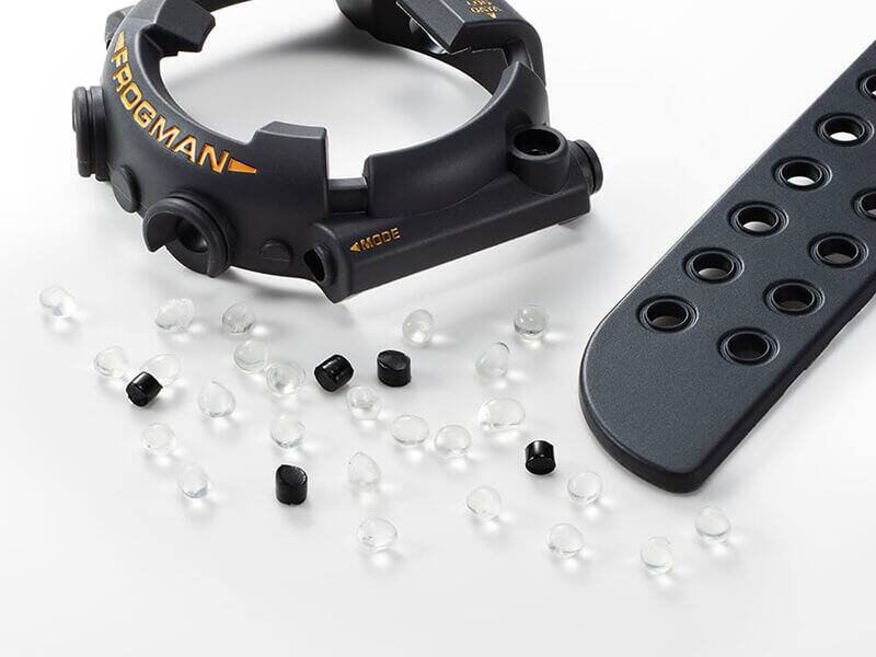 使用錶圈、錶冠、按鈕和防護零件一體成形的構造,增強了抗震性。 αGel® (Alpha Gel)*1安置於錶冠的頂部中。