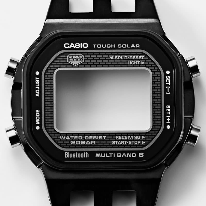 GMW-B5000 繼承了首款 G-SHOCK 手錶 DW-5000C 的設計,以成就其全金屬風貌。DW 5000C 由於材質包含樹脂,當初製造時使用的是另一種鑄模。如今要以金屬實現 DW 5000C 的外型,就需要精密的技術。