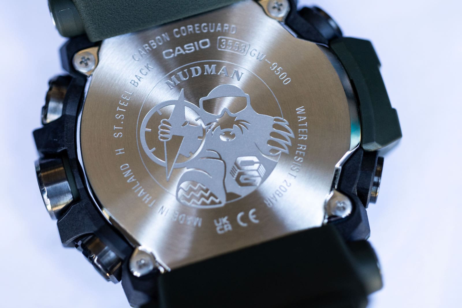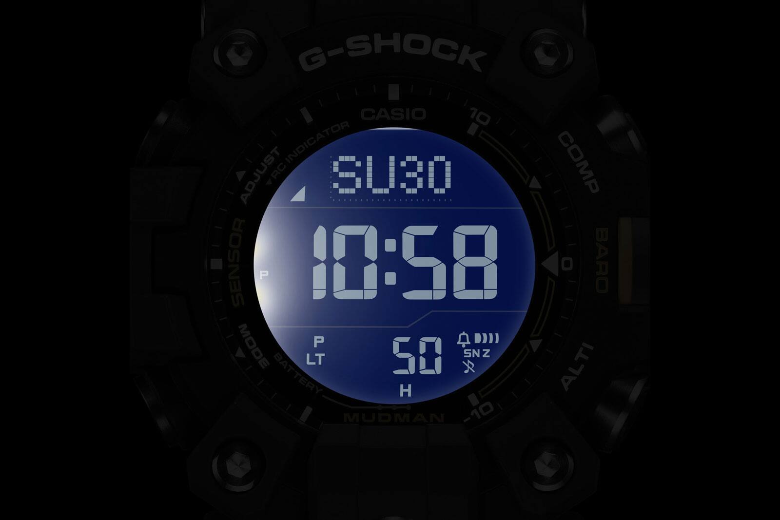 由於它是提倡與自然共存的MASTER OF G系列,因此在錶殼、錶圈和錶帶上利用可再生有機資源的生物質塑料是適合新款MUDMAN的更新。 另一件不容錯過的事情是錶背上的鼴鼠圖案。 視覺效果就像一隻帶著指南針的鼴鼠從大顯示螢幕中走出來,巧妙地與MUDMAN這次的進化連結在一起。 此外,增強黑暗處可視性的超亮照明也是一個實用的細節。