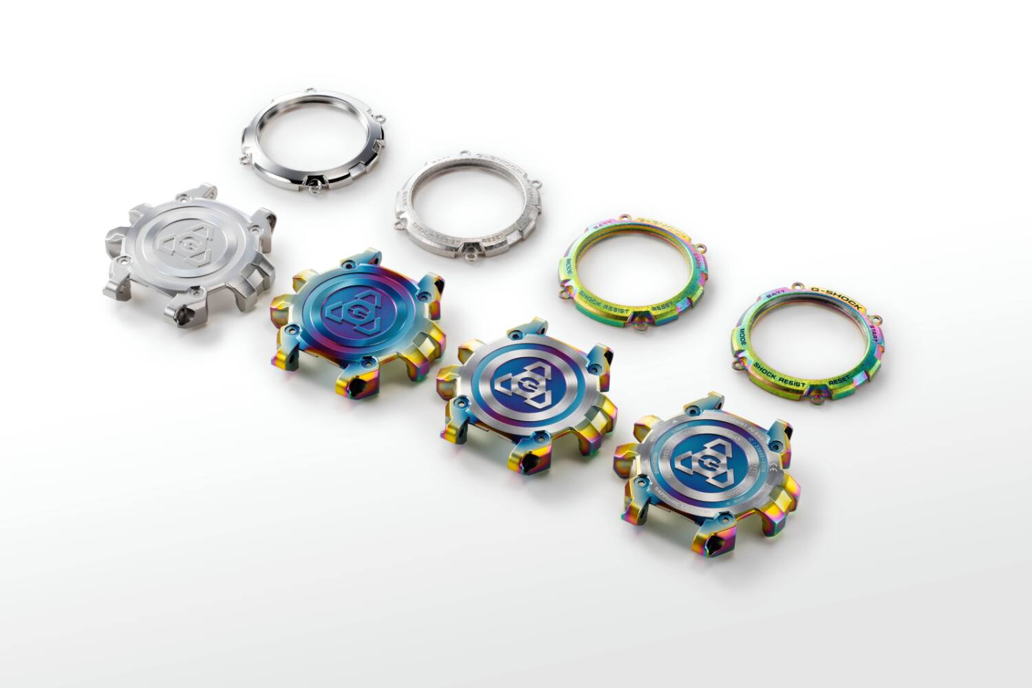 MTG-B3000PRB為展現令人驚艷的多彩極光外觀,將不鏽鋼錶圈施以再結晶技術與深層硬化處理後,再施以彩虹離子IP鍍膜,打造出閃爍著獨一無二極光的獨特樣貌。背蓋同樣由經過彩虹離子IP鍍膜處理的不鏽鋼製成,再進行重新拋光工藝僅去除錶殼背蓋凸起處的塗層,將金屬原有的閃亮光澤與變幻多彩色調相結合,營造出特殊的表面處理。錶帶部分則採用紫色半透明柔軟合成樹脂,搭配經棕色與紫色離子IP鍍膜扣環零件,展現神秘美麗的北極光色彩,邀請消費者一同欣賞從外太空視角所見的極光之美。