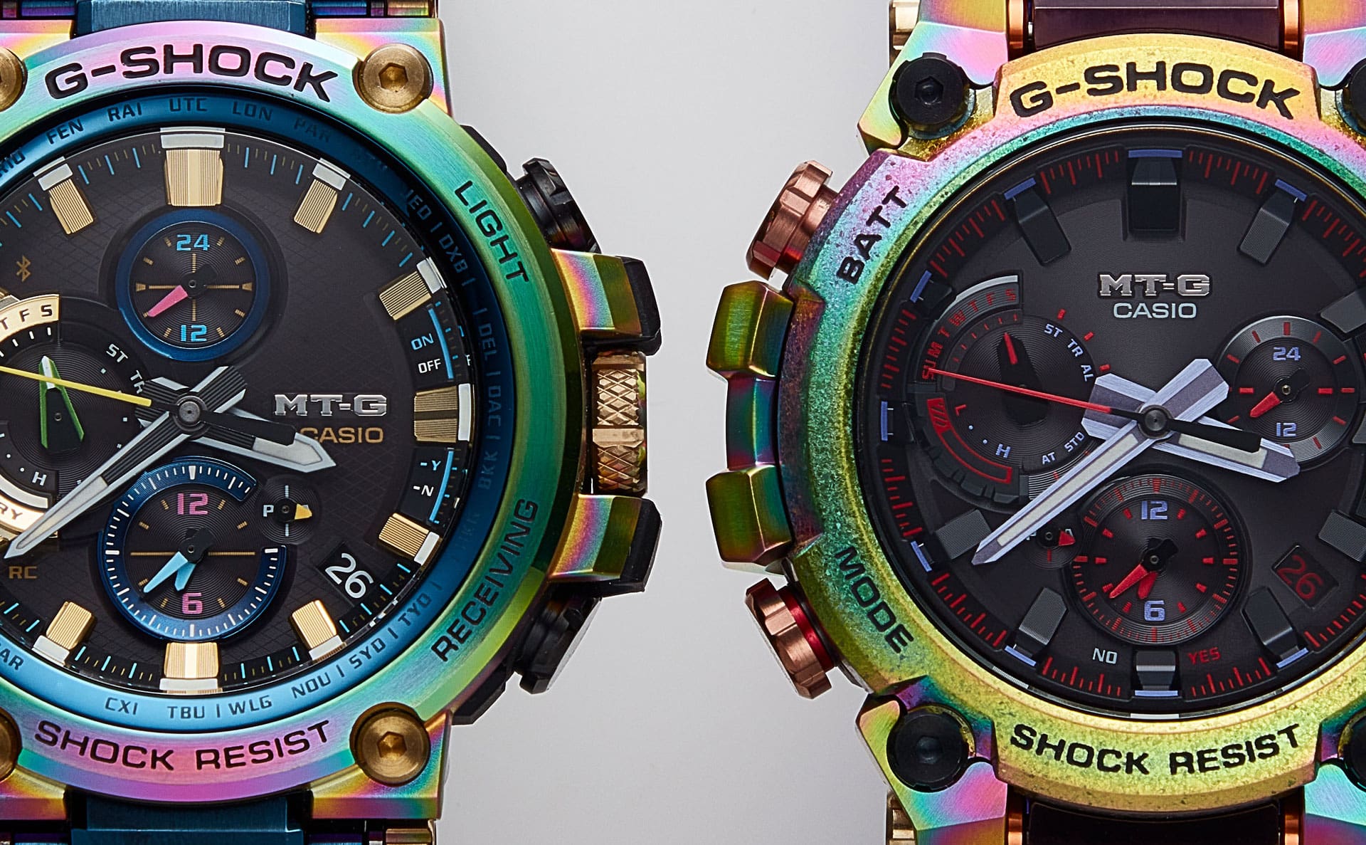 自2019年發表首款「黑夜彩虹Lunar Rainbow」以來,MT-G的彩虹離子IP鍍膜系列已開發出「火山雷」、「藍鳳凰」等型號。 其最新作品MTG-B3000PRB-1A以「極光」為主題,即從太空看到的極光。 以該系列常見的鮮豔彩虹色為基礎,透過調整色調和紋理,營造出與以往不同的夢幻氛圍。 這種表達是透過一種新的加工技術實現的,該技術將彩虹IP與再結晶和深層硬化不鏽鋼相結合。 彩虹色以水晶圖案為基底,營造出以往款式所沒有的精緻光彩。 規劃負責人表示,官方選擇極光為設計主題,是因為此表達方式與極光的形象重疊,多種顏色的光在大氣中錯綜複雜地交織在一起。 該作品是CMF(顏色、材質、飾面)設計主導主題的罕見範例。