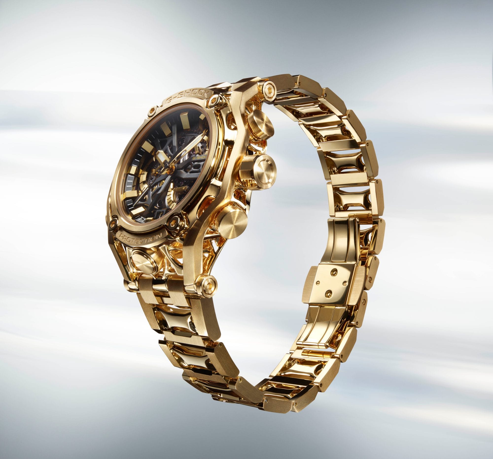 全新錶款搭載G-SHOCK經典的Triple G Resist結構,具備抗衝擊、抗離心力與抗震三大特性。內部機芯由碳纖維強化樹脂內殼保護,外部則以不鏽鋼金屬組件包覆,加上高密度安裝技術,大幅提升結構強度與整體輕薄度。錶殼背面採用金屬射出成型(MIM)製程,能實現複雜且精細的立體輪廓。錶盤是由Yamagata Casio精細加工的多層次設計,立體排列的零件設計搭配斜面錶盤環與大尺寸立體指針,營造出深邃層次感。銳利的指針採用多面切割造型,並結合磷光處理與金屬蒸鍍工藝。運用精密的加工技術,細膩打造每一個零件,從細節處體現出質感與工藝的極致講究。