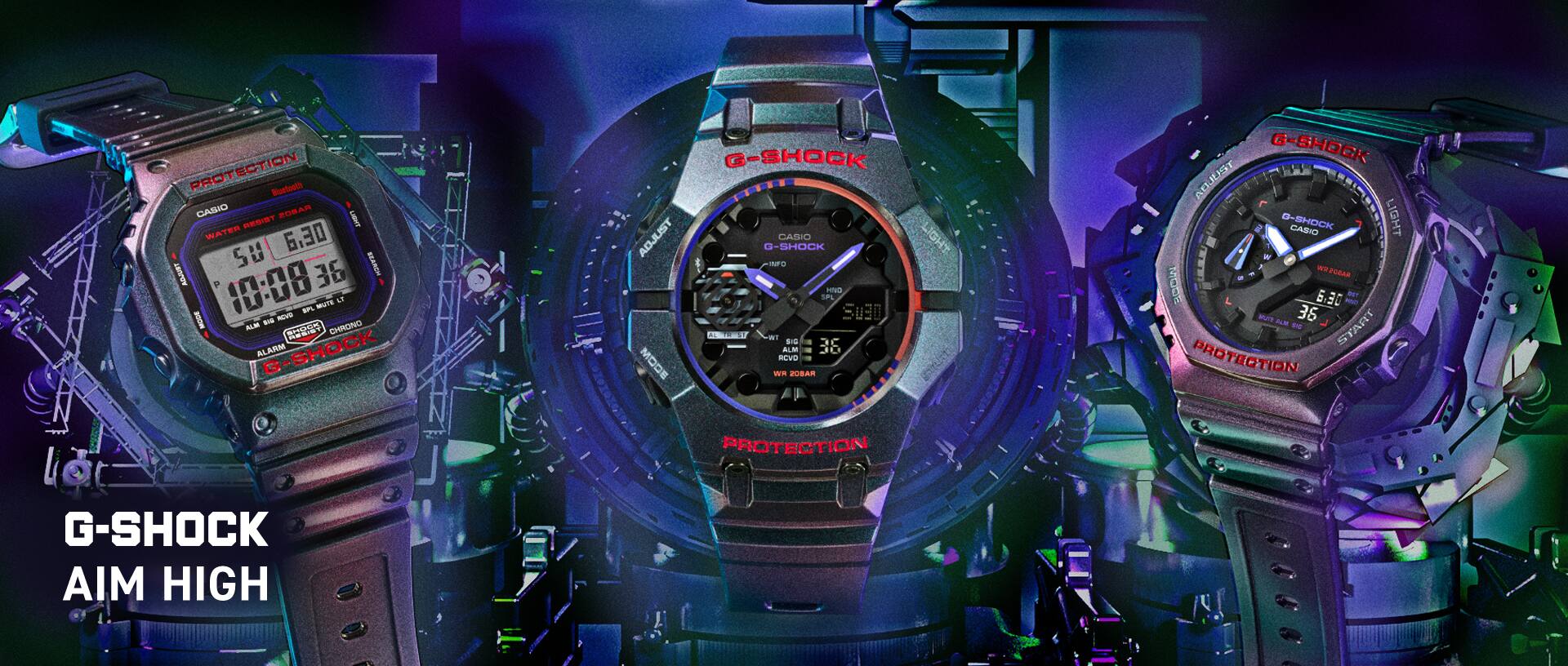 將射擊遊戲中追求高分的「Aim High」(瞄準高分)概念與努力達到更高水平的G-SHOCK形象相結合。