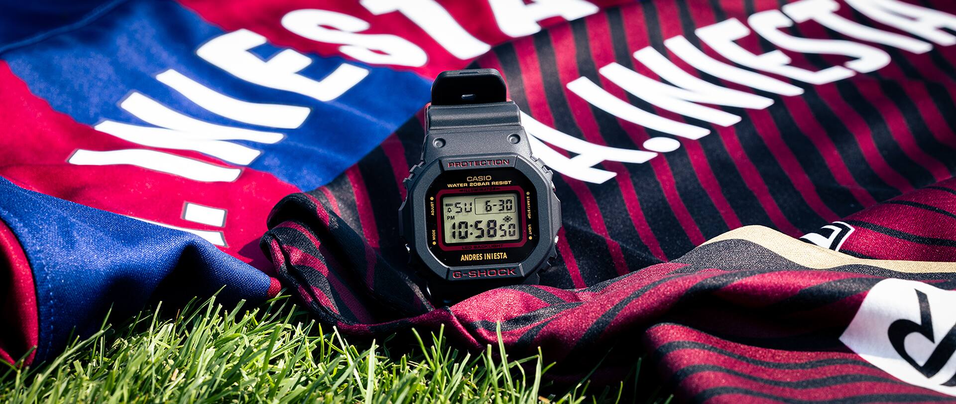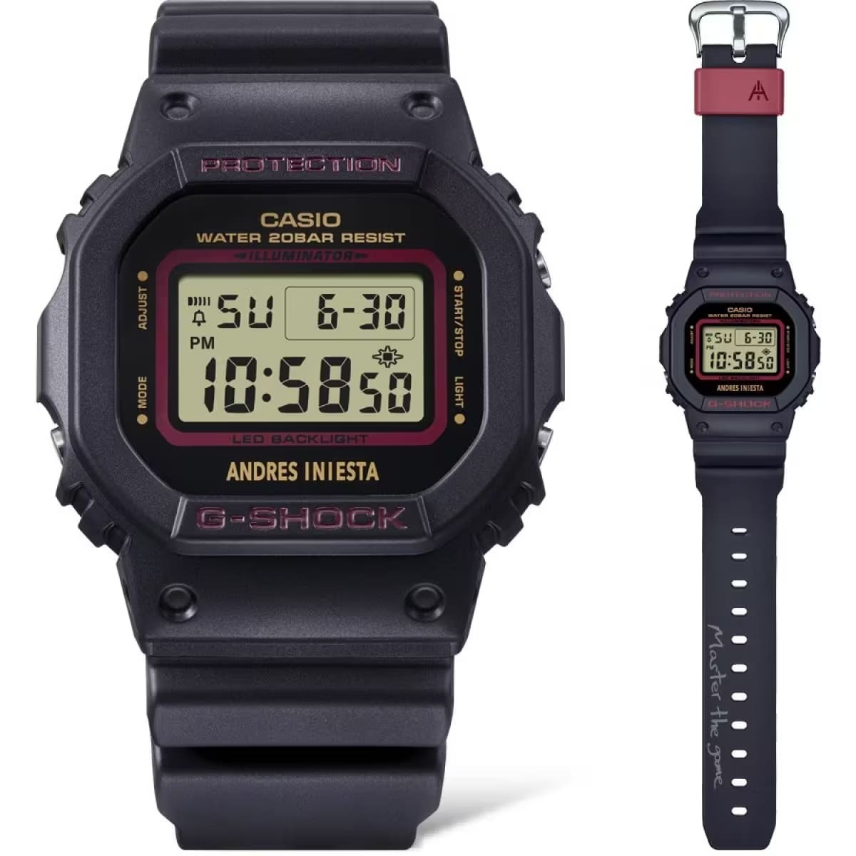 以代表G-SHOCK的DW-5600為基礎型號,將Iniesta的簽名、Logo、球衣號碼等元素融入其中,