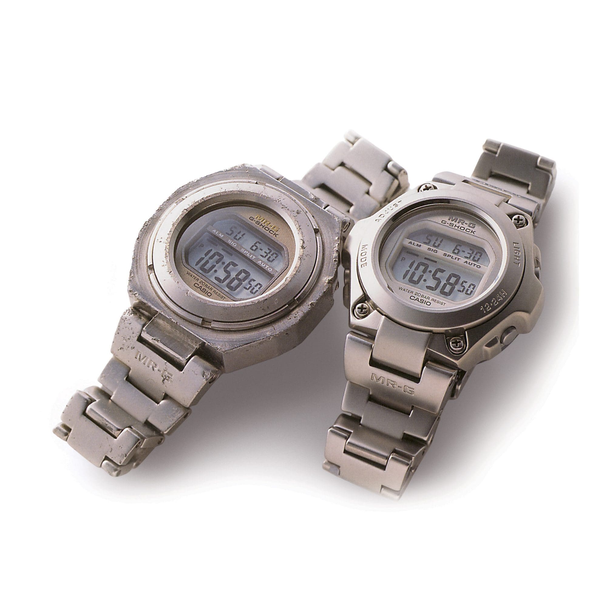 最終成品以 MRG-100 的名稱推出,為 G-SHOCK 的金屬版本。這款全新手錶與黑色包覆的樹脂 G-SHOCK 不同,沒有金屬手錶常見的錶冠,且價格是一般型號的五倍。這是一個真正前所未見的產品,顛覆了 G-SHOCK 的傳統形象。然而,與某些人預期的不同,這款手錶獲得相當不錯的銷售成績。如果當初的目標是開發金屬 G-SHOCK,執著於傳統反而可能會妨礙團隊取得如此佳績。相反地,就像開發首款 G-SHOCK 時一樣,堅持簡單的概念成為他們得以突破的原因,也就是創造堅不可摧的金屬手錶。MRG-100 作為 MR-G 系列的第一款手錶,是那些致力於創造它的人懷抱堅定信念所催生出的純粹錶款,他們的精神必將透過這款手錶而長久流傳。