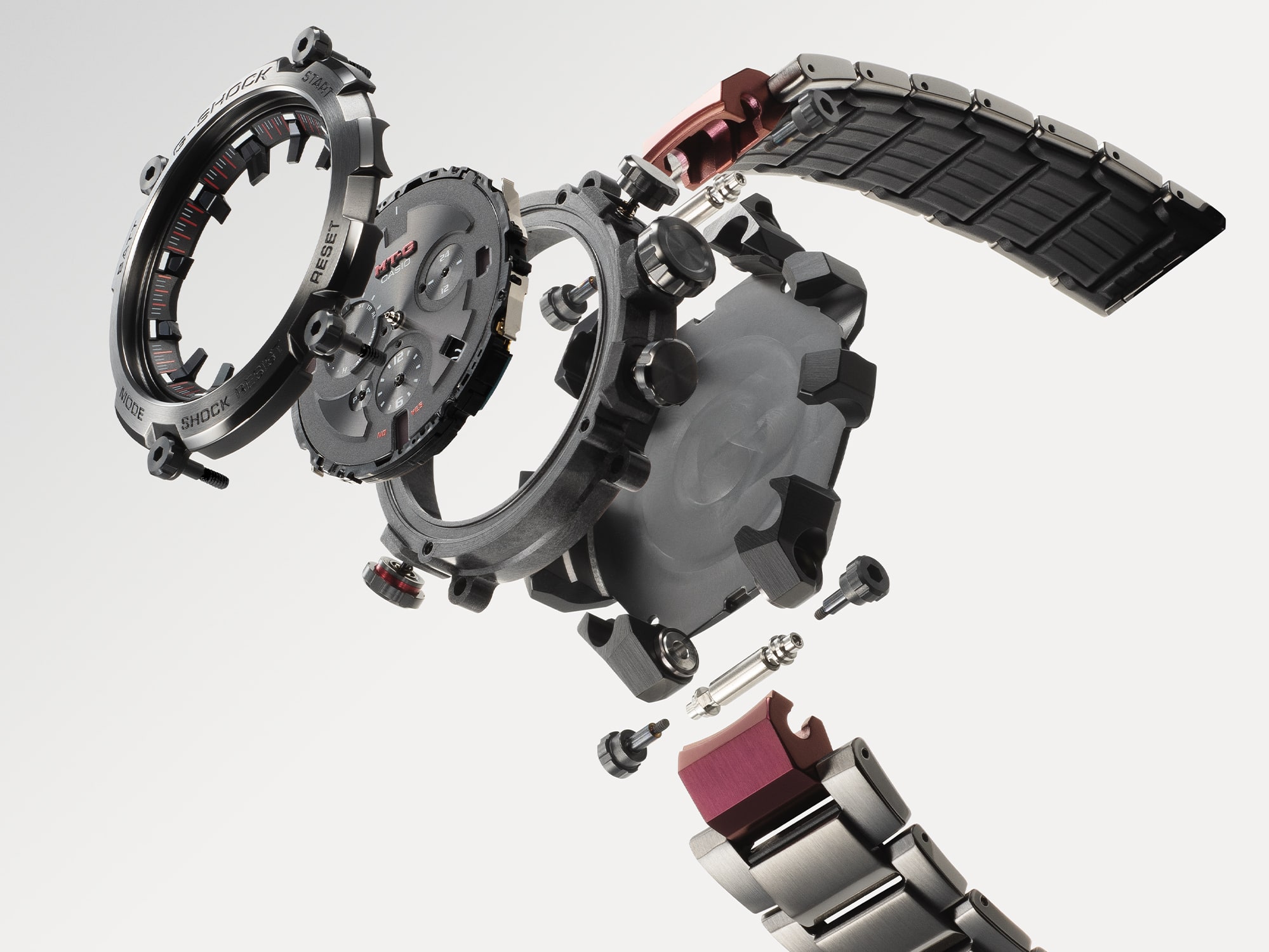 雙層碳核心防護構造透過碳纖維強化樹脂錶殼保護機芯,並使用金屬零件密合錶殼。背蓋的側邊凸起以作為連接錶帶和錶殼的錶耳,並且可保護錶冠和按鈕。除了提供強化的堅硬度,一體成型技術還有助於使手錶變得更加精巧輕盈。