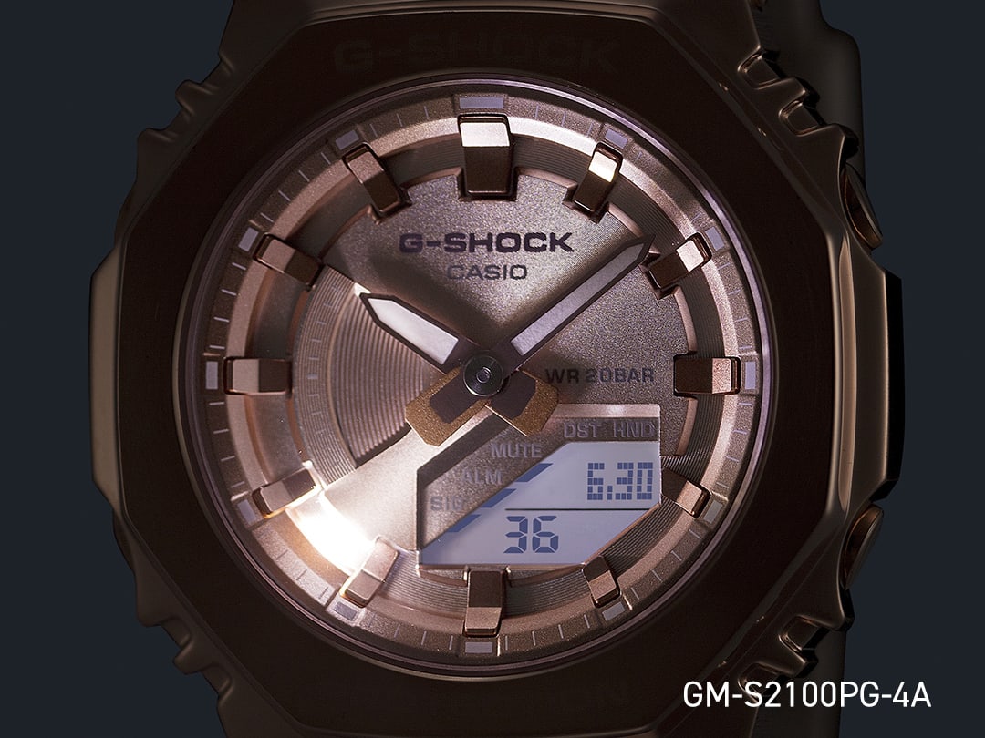 粉紅金和粉米色相配,輕巧的金屬包覆G-SHOCK。