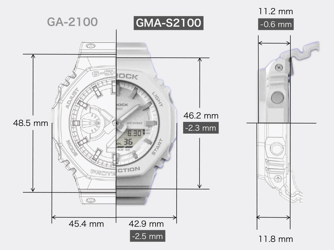 繼承第一代G-SHOCK型號八角形外觀設計理念並縮小尺寸。 它是一款適合任何人佩戴的輕巧型號。