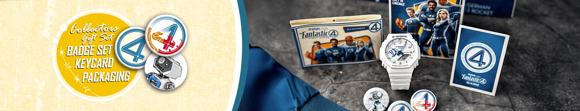Born from the cosmos, built for adventure - introducing the limited G-SHOCK collectors set celebrating the release of Marvel Studios’ The Fantastic Four: First Steps In Cinemas Thursday July 24. These four white-and-blue timepieces are forged with the same spirit that launched the Fantastic Four into orbit: bold science, fearless exploration, and unstoppable durability.