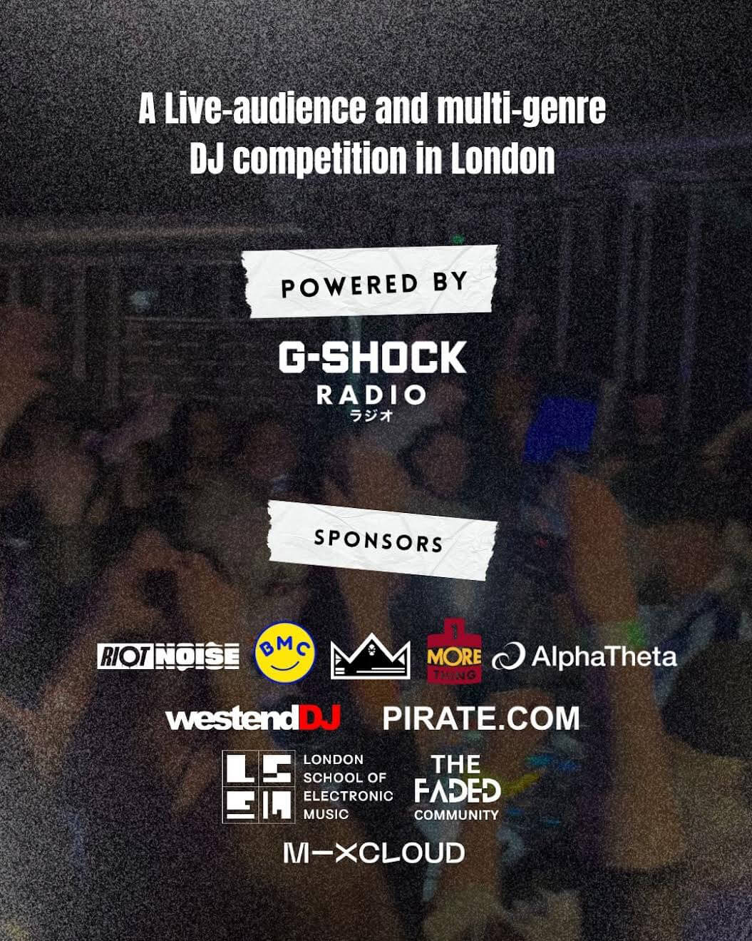 The Grand Prize: The All-Stars Champion walks away with career-defining prizes, including a G-SHOCK Radio 6-month residency, an Alpha Theta OMNIS DUO portable CDJ equipment, a festival slot with Riot Noise, 2 hours 1-on-1 Marketing & Instagram online consultation with The Faded Community, funds towards a music production course with LSEM, Pro accounts with Mixcloud, studio time with Pirate Studios and more.