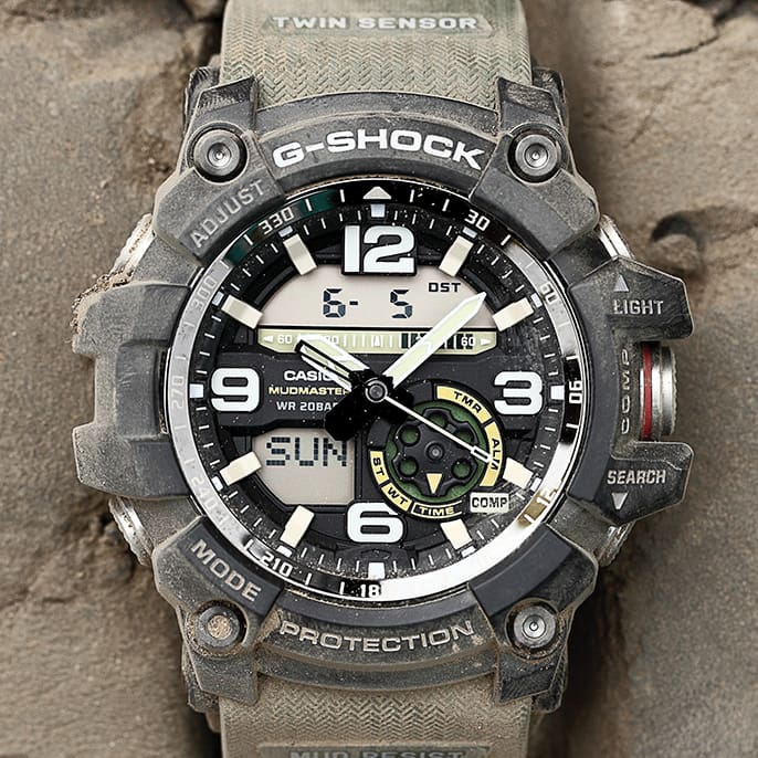 Mud-resistant field watches that combine modern digital LCDs with reliable analog dials, Mudmaster excels in the mud and dirt of any outdoor trek. Explore the GWGB1000 series of field watches—the flagship of Mudmaster—which offer vibration resistance, Multiband 6 radio reception, Bluetooth®, Tough Solar, altimeter, barometer, compass, thermometer, and much more.