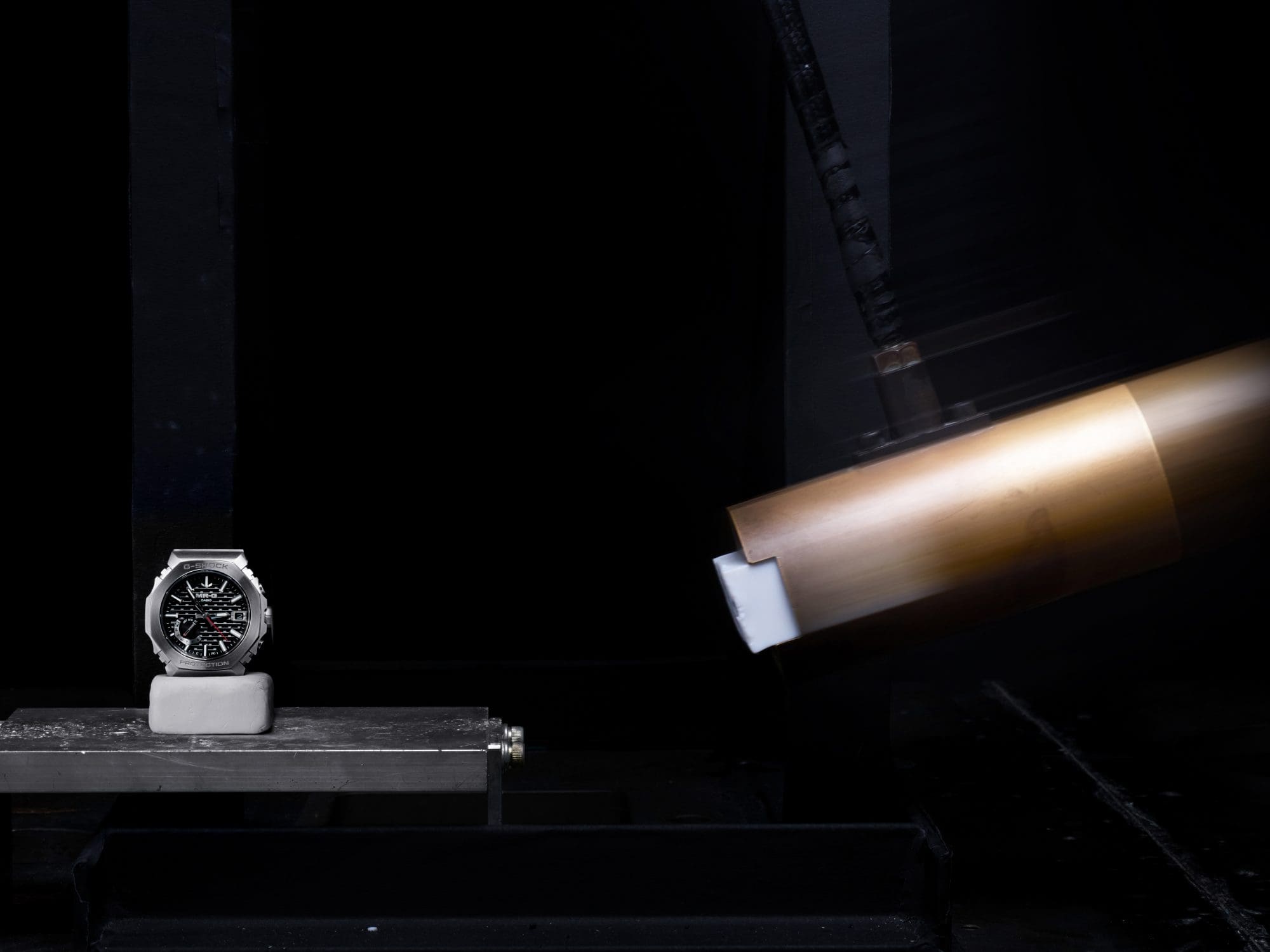 Watches were originally considered delicate precision instruments never to be dropped. But the tough ness of G-SHOCK, born in 1983, has a history of bold durability testing that began with the dropping prototypes from a third- floor window at the Hamura R&D Center. Over time, the pursuit of the ultimate quality spurred the creation of the brand’s flagship line, MR-G. Meanwhile, testing methods evolved alongside the watches to yield today’s remarkable level of quality. Tell us about this relentless pursuit of toughness.