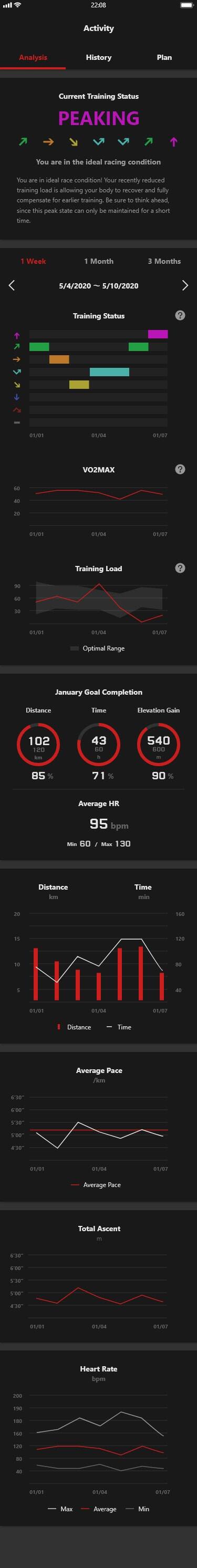Data analyzed with the phone can be transferred to the app for easier reading and management. This helps you spot changes in your VO2 max and training status, which you can incorporate into your training results and future improvement plans.