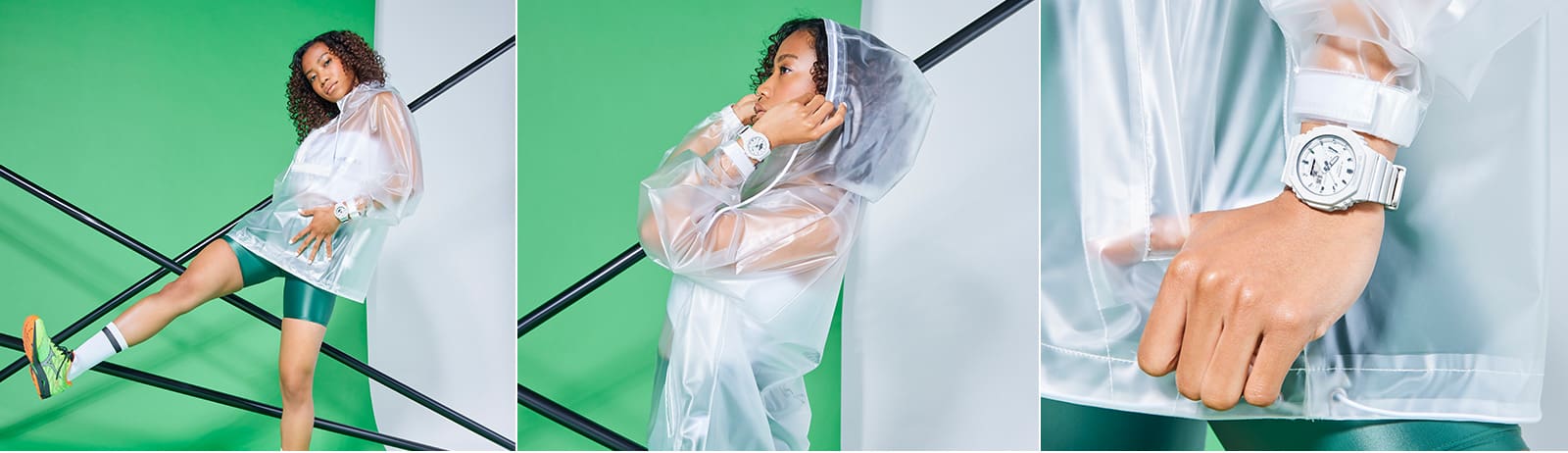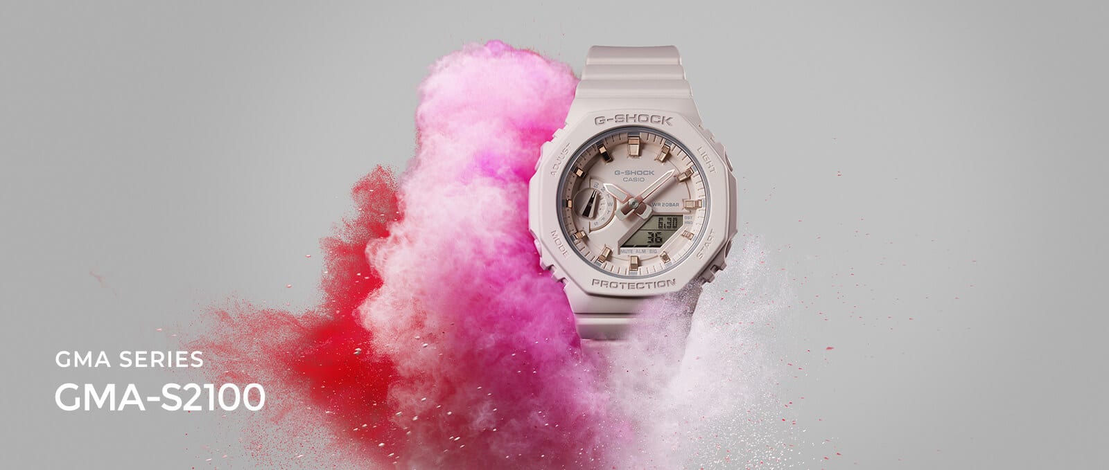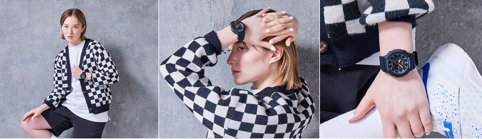 Slim, lightweight, compact watches with octagonal bezels and a monochromatic look.